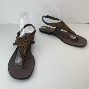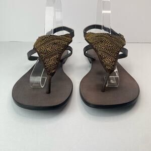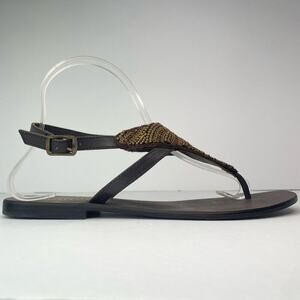 Matisse Women's Dina Brown Leather Gold Beaded Thong Sandals Size 9