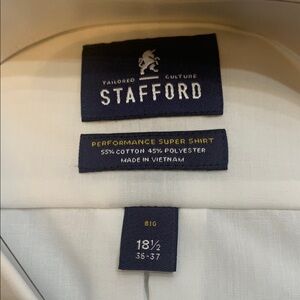 Experience timeless elegance with the Stafford White Dress Shirt, crafted from a premium cotton blend for a crisp and polished look. Ideal for formal occasions, this shirt features a standard collar and a clean, professional finish that complements any business attire.