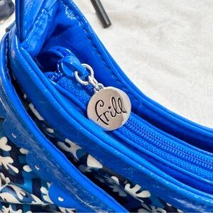 Vera Bradley Blue Frill Vintage White Shoulder Bag with Geometric Pattern EUC