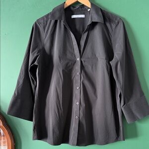 Stylish olive puffer vest. Perfect for layering. Features zip pockets and button closure.