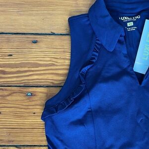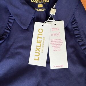 Lilly Pulitzer. NWT. Athletic Martina collared sleeveless polo. Ruffle detail, Navy, size xl