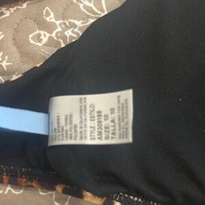Stylish leopard print bikini by ANTONIO MELANI. Features a bold animal pattern. Perfect for a chic beach look. Size 10 top and bottom gently worn once. Gold adjustable top. Buckle closure Excellent condition smoke free. Let free home