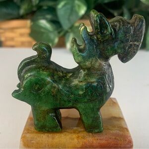 Measures 4.75" x 4.5" x 3.5". Can be displayed several ways, see the base cuts. Weighs 425 grams.