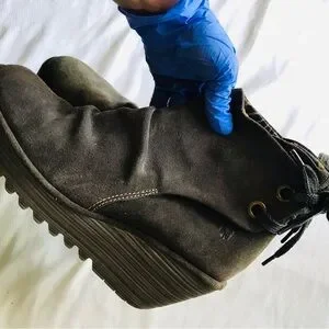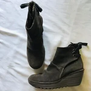 FLY LONDON SHOES YAMA SLUDGE GREEN SUEDE BOOTIES PLATFORM WEDGE ANKLE BOOT