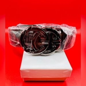 Elevate your style with this luxurious black belt featuring a striking gunmetal belt buckle. Perfect for any occasion. This belt is not authentic “GG,” but is beautifully constructed and well made none-the-less. Ready to look amazing?
