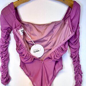 NWT Princess Polly Delany Pink Long Sleeve Ruched Square Neck Sheer Bodysuit 6