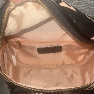 Elevate your style with this chic black and pink women's bag. Perfect for any occasion. Deep main compartment will fit your cellphone and much more.