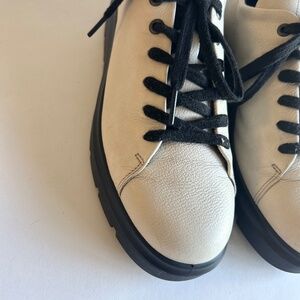 Ecco Ivory Leather Black Rubber Outsole Sneakers size 7.5. Heel 1.5”. In great condition, no signs of wear, gently worn a few times.