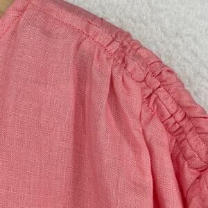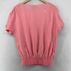SAKS FIFTH AVENUE Top Womens S Linen Ruched Smocked Short Sleeve Pink