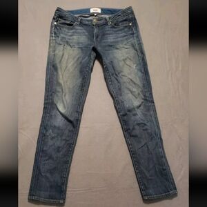 Stains on the waistband, belt loop and ankle at the bottom.
