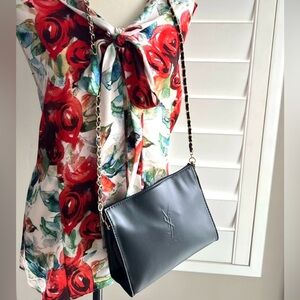 Yves Saint Laurent beaute Black Shoulder snap Clutch with added unbranded chain strap.