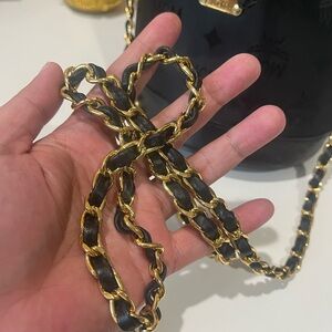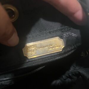 Authentic vintage, made in Germany. MCM textured black canvas with gold hardwares. Main metal plate has scratches. Hardware has some fading.