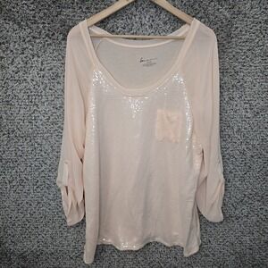 Lucky Brand Top Womens Small Mauve Striped Cold Shoulder Stretch Tee Casual