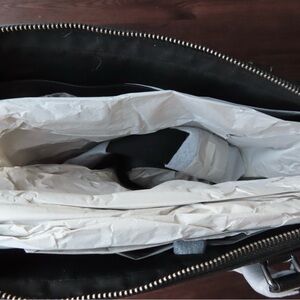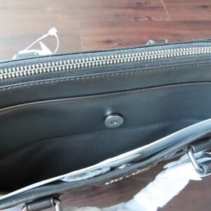 -Four credit card slots Inside zip and multifunction pockets -Inside laptop sleeve with secure tab Zip closure fabric lining -Handles with 5 drop Outside snap pockets
