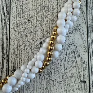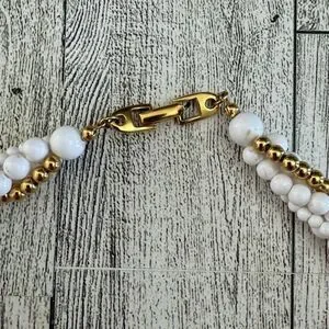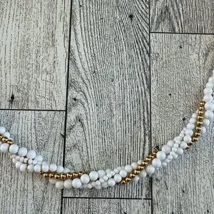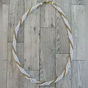 Napier White & Gold Tone Beaded Necklace. Measures 29.5"