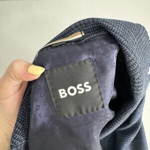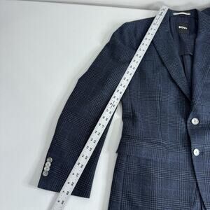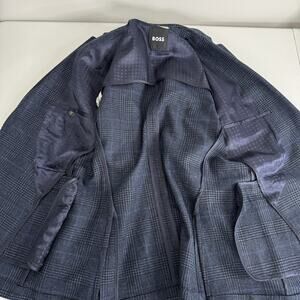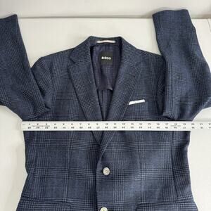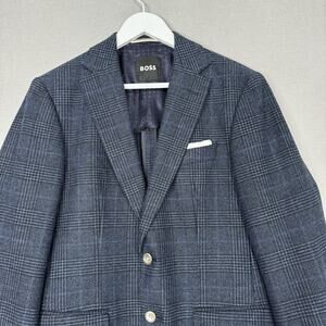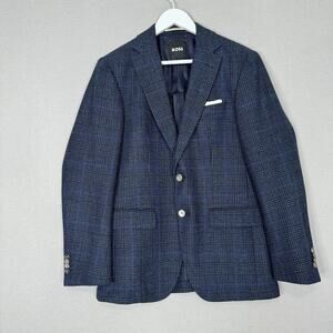 BOSS Blazer Mens 36R Blue Plaid Wool Blend Hutson Slim Fit Sport Coat Jacket