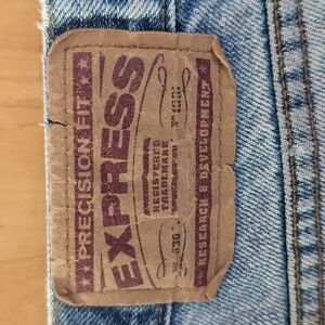 Iconic Express straight leg jeans, light wash, perfectly broken in, light discoloration on front right thigh, see photos for flaws. From early Y2K by one owner.