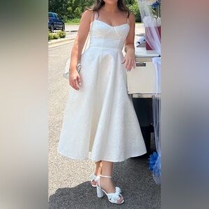 Chic white midi dress. Spaghetti straps. Sweetheart neckline. Perfect for any occasion.
