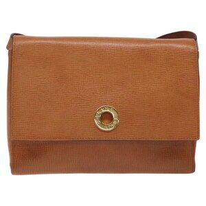 CELINE Shoulder Bag Leather Brown Gold Auth