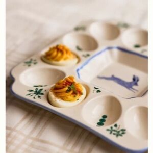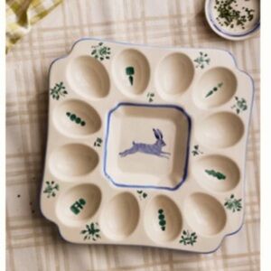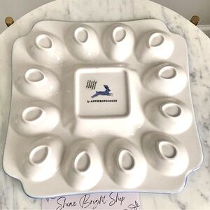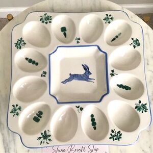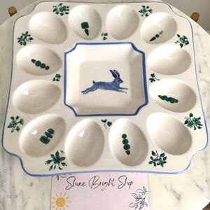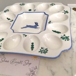 New with tag Anthropologie Lexington Stoneware Deviled Egg Platter featuring handpainted flowers, plants, and whimsical wildlife. Super cute paintings of a rabbit on the front and on the back of this beautiful platter.