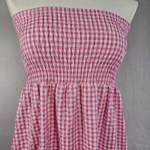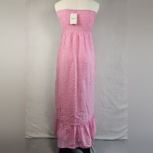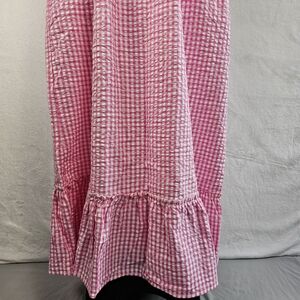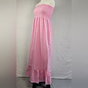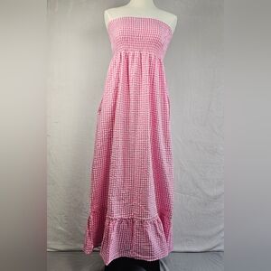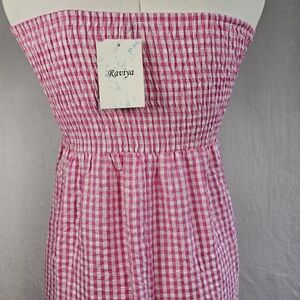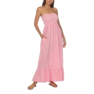 Raviya Women's Maxi Dress Swim Cover Up Size M 100% Cotton Pink White Check