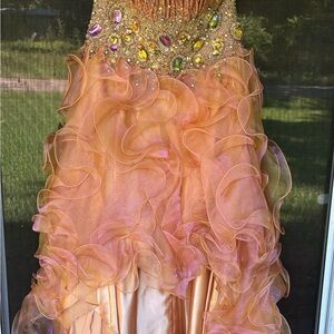 Elegant Gold Prom Dress with Gemstone Accents