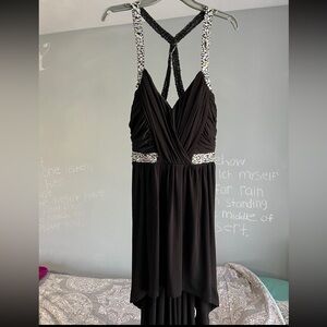 Black slip-style midi dress with adjustable spaghetti straps and side slit. Features crisscross lace-up detailing on both sides of the bodice. Straight neckline, lightweight stretch fabric. Has a long slit. Make me an offer!