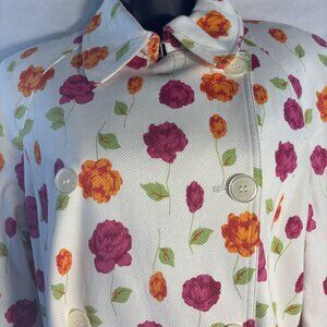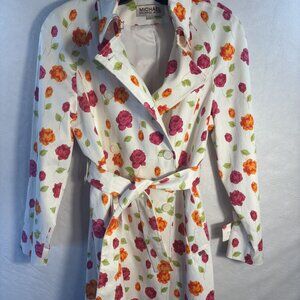 Michael Michael Kors Floral Belted Trench Coat Women’s Large iWhite W/ Red & Ora