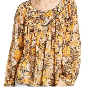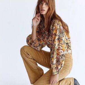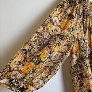 Multicolor Floral Button Front Embroidered Neckline Balloon Sleeves Oversized Fit Lightweight 100% Cotton
