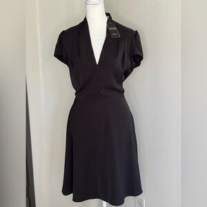 A self-belt at the waist enhances the fit-and-flare silhouette of this short-sleeve dress, which is crafted with silky georgette for a fluid drape. A timeless piece that can easily be dressed up or down, this dress is detailed with pleats at the shoulders for an elegant finishing touch.
