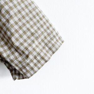 Quiksilver Mens Plaid Regular Fit Cotton Button Up Shirt Tan White Large