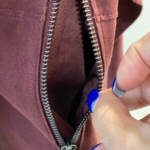 Women's Burgundy Drape Front Faux Suede Jacket-S