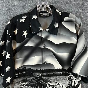 Title: Men's Vintage Dragonfly Easy Rider Motorcycle AOP SS Button Up Shirt Black M