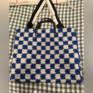 Clare V Summer Simple Tote- Blue & White checkered
