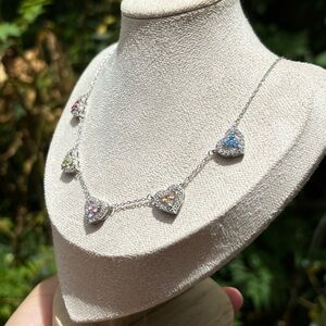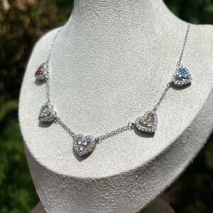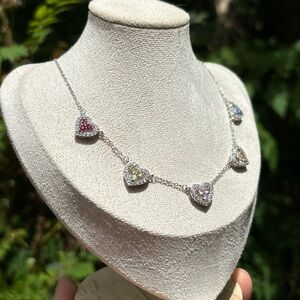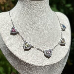 18K White Gold Plated Stainless Steel Multi Color Diamond Heart Necklace
