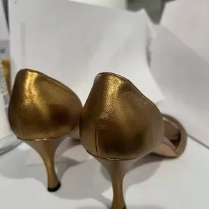 Elegant bronze heels with open-toe design. Perfect for adding sophistication.