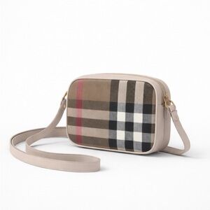 Stylish Burberry bucket bag with iconic checkered pattern. Features adjustable strap and drawstring closure.