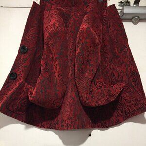 Gilani Womens Formal Blazer, Lightweight Size 8, Color Red, Black Pattern, 75% Cotton, 25% Polyester, Lined, Front Pockets, Shoulder Pad, Closure Buttons, Good Condition, Relaxed Fit, Great Look, Great Fit