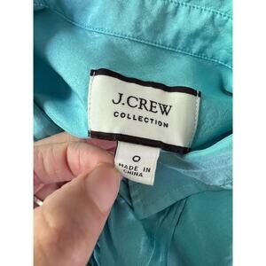 J. Crew Collection Ruffle Shirt In Garment Dyed Silk. This stunning top is made from 100% silk in an aquamarine blue with vintage details. Flouncy button front blouse with romantic ruffle details down the front and cuffs. Can be dressed up or down, lightweight for easy layering.