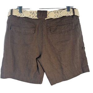 Brown Linen Blend Shorts With Crochet Belt & Drawstring Accents Size 12