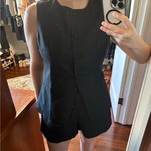Elegant black vest with a sleek design with matching shorts. Commence set