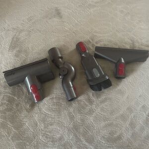 Dyson attachment set in gray with red highlights. Ideal for efficient cleaning.
