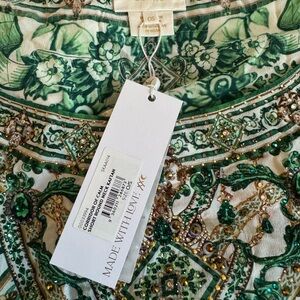 Stunning Camilla kaftan with intricate green patterns and embellishments. Ideal for a chic ensemble.