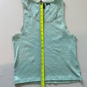 Blue green tank with lace detailing. Perfect for casual wear. Soft and comfortable fabric with stretch. EUC no stains or holes. Smoke free home. Bundle & save!