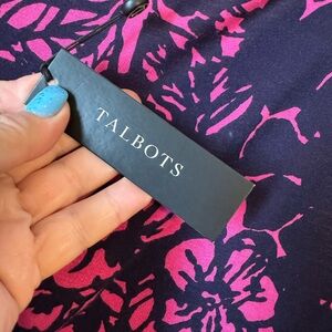 Chic Talbots blouse with a striking Pink and Navy pattern.