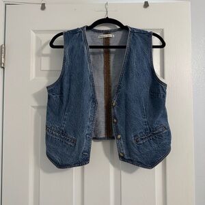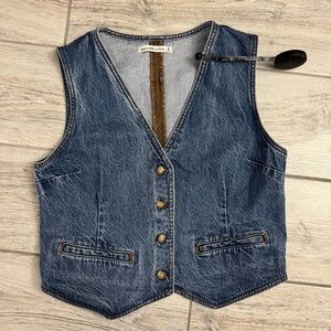 This cute and stylish blue denim vest from Abercrombie & Fitch offers a timeless, structured fit perfect for layering. It’s a versatile addition to any wardrobe. Washed but never worn.