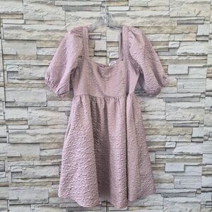 Charming dress with vibrant floral pattern. Features delicate ruffle accents.