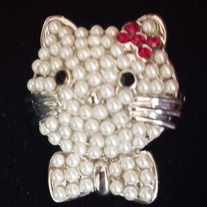 made with pearl beads, red rhinestone bow, Silver whiskers & Nose and trim