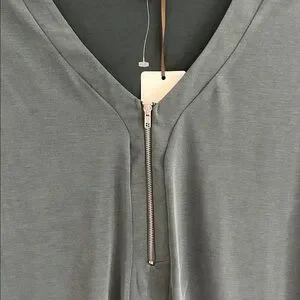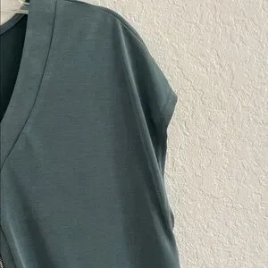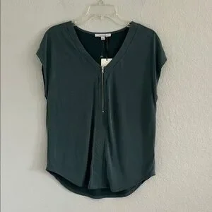 Elegant dark green blouse with a sleek V-neck. Perfect for any occasion.
