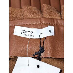 NWT Fame/Ekim 31 Women's Brown Faux Leather Ruffle Skirt with Belt Size M 1837